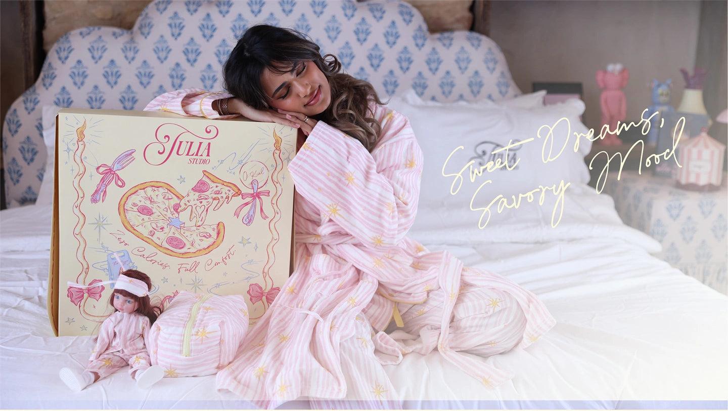 في توليا ستوديو نصنع قطعًا تحمل إحساسًا خاصًا في كل تفصيلة. مجموعاتنا مصممة لتجمع بين الراحة، النعومة، والجمال بطريقة تناسب لحظاتك اليومية. نحرص على اختيار الخامات بعناية، وتقديم تصاميم مدروسة، ولمسات لطيفة تجعل كل قطعة أكثر تميزًا وقربًا منك. من ملابس المنزل المريحة إلى الإكسسوارات الناعمة، كل منتج لدينا صُمم ليحوّل التفاصيل البسيطة إلى تجربة أجمل.